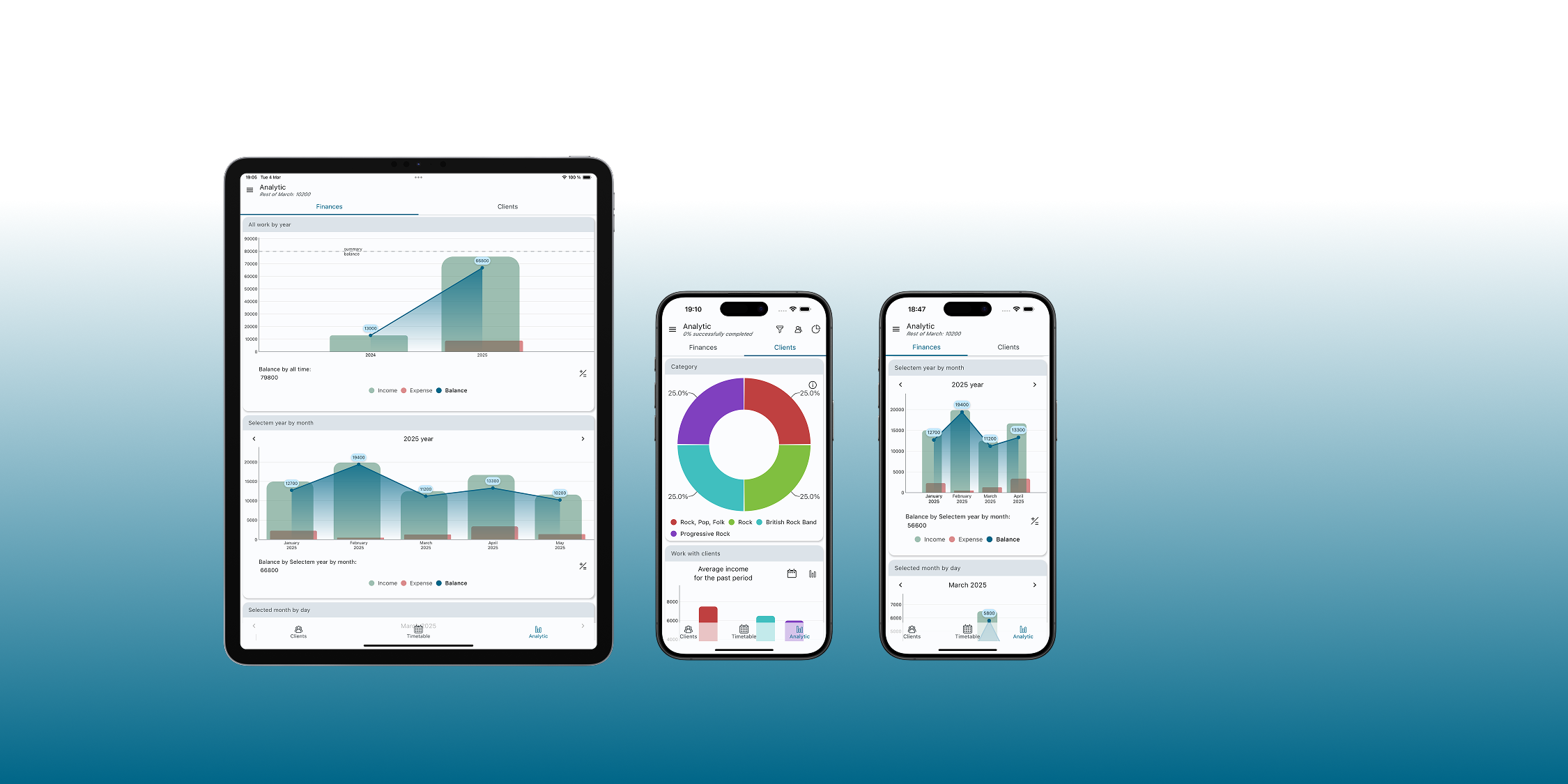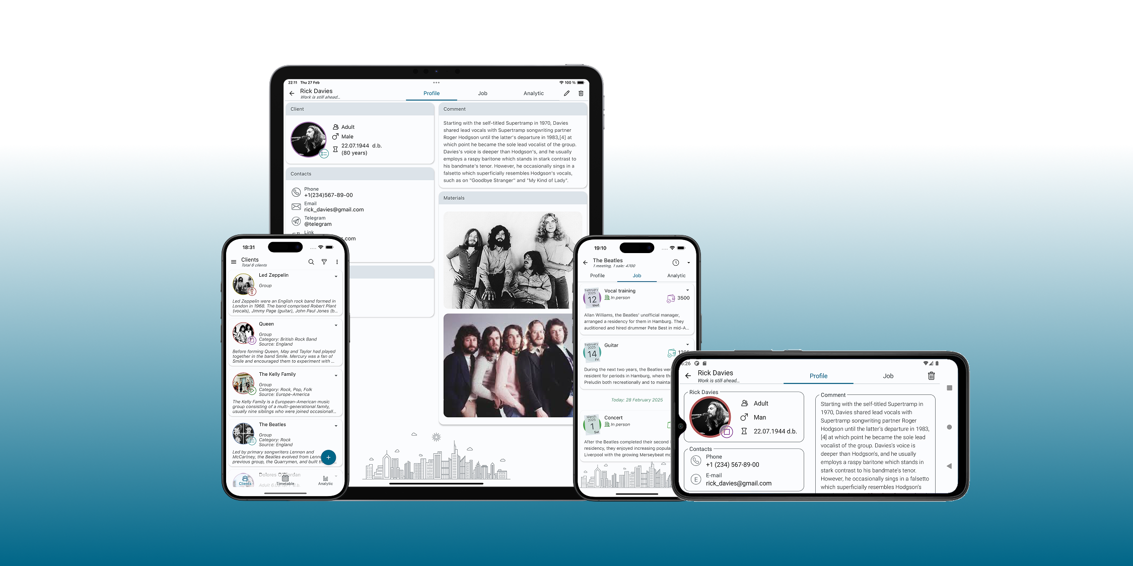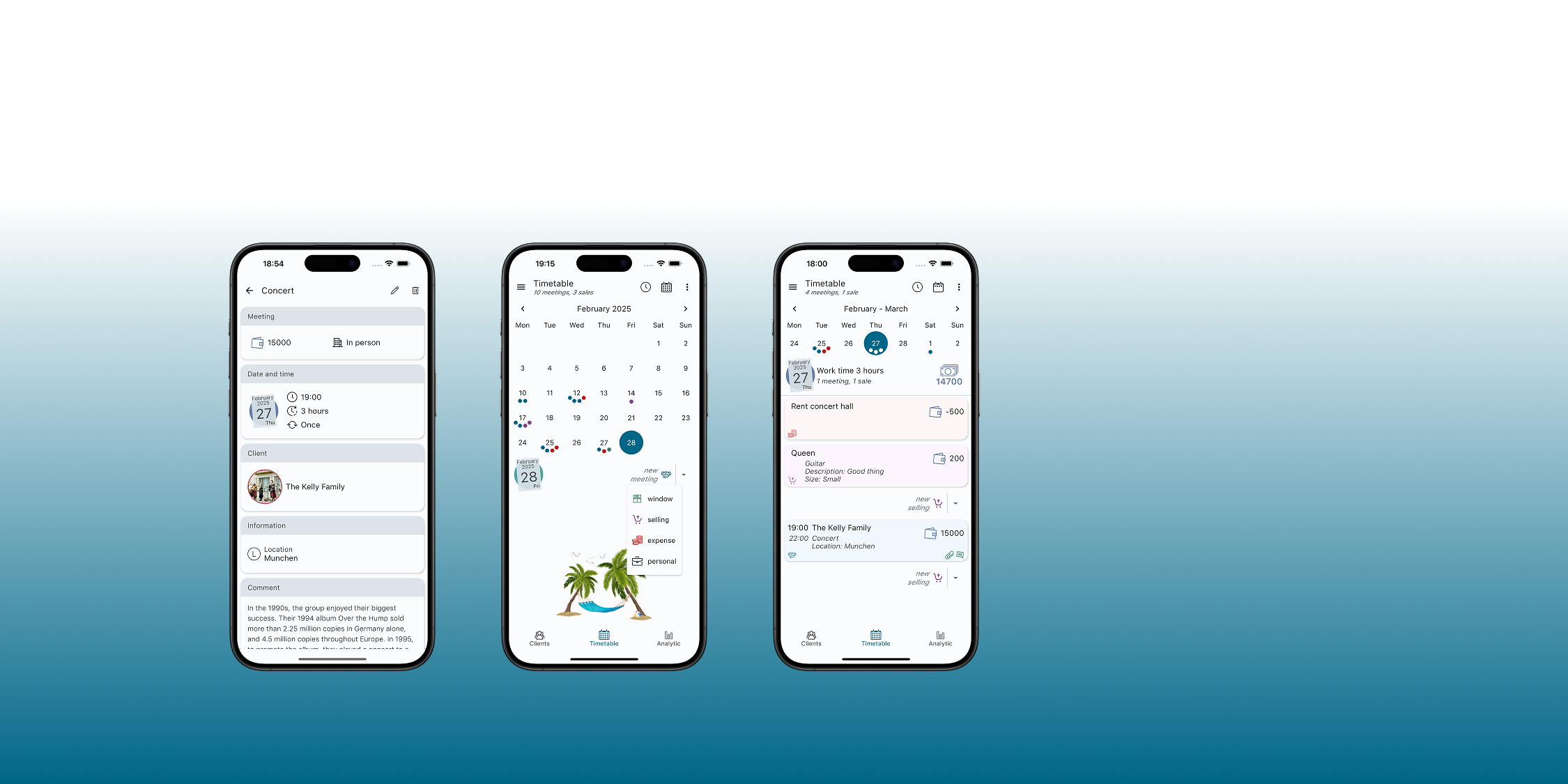 The application was created for self-employed people and small businesses. It helps you keep track of clients, manage schedules, control finances and analyze data.
