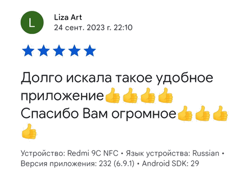 Однозначно рекомендую приложение. Разработчику спасибо.